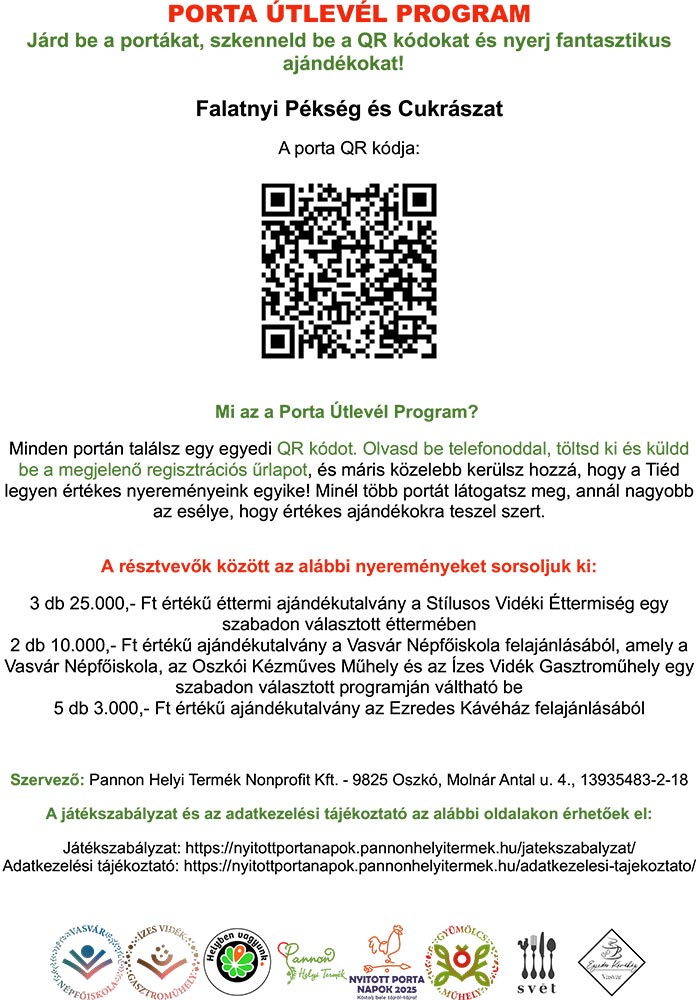 A Falatnyi Pékség Magyarpolányban, a Táncsics u 3. szám alatt a település központjában található.
